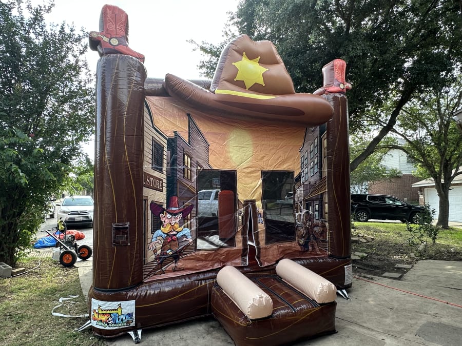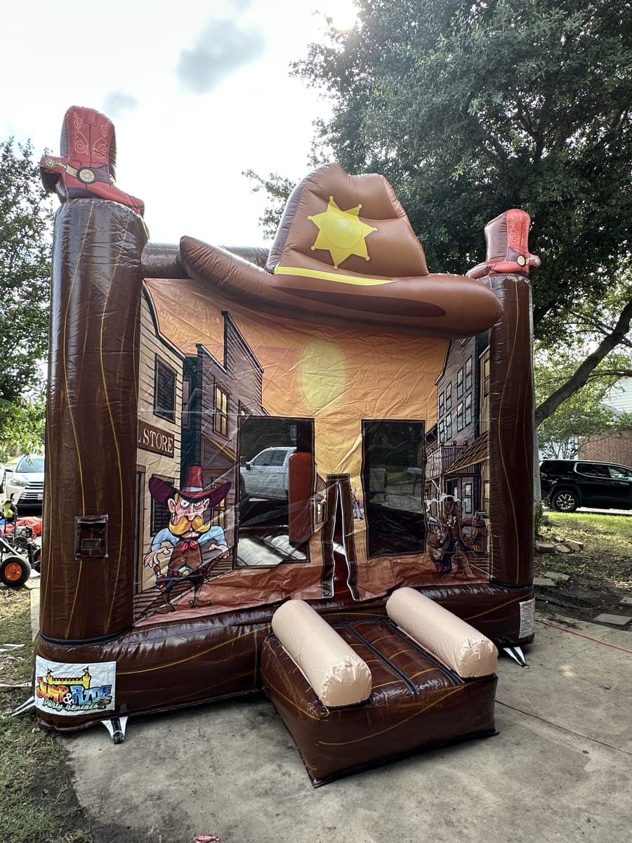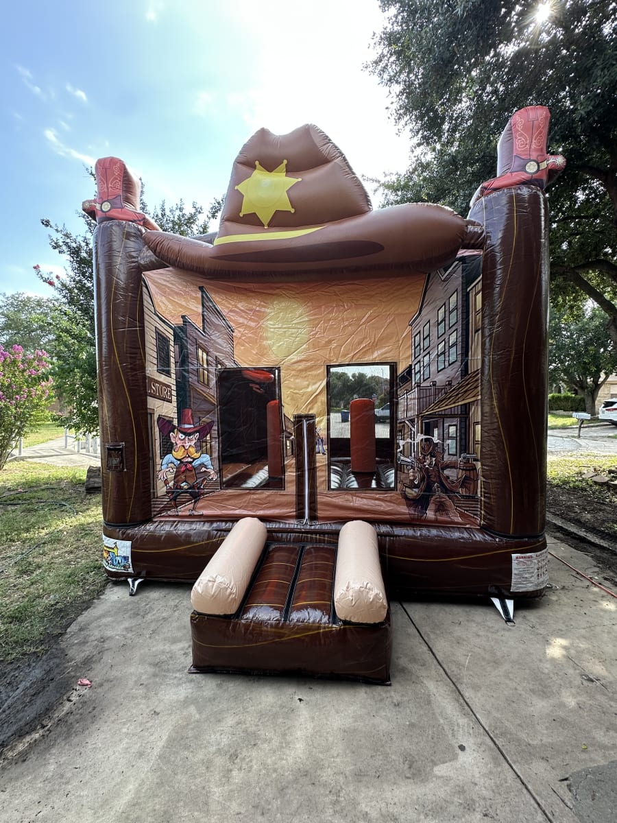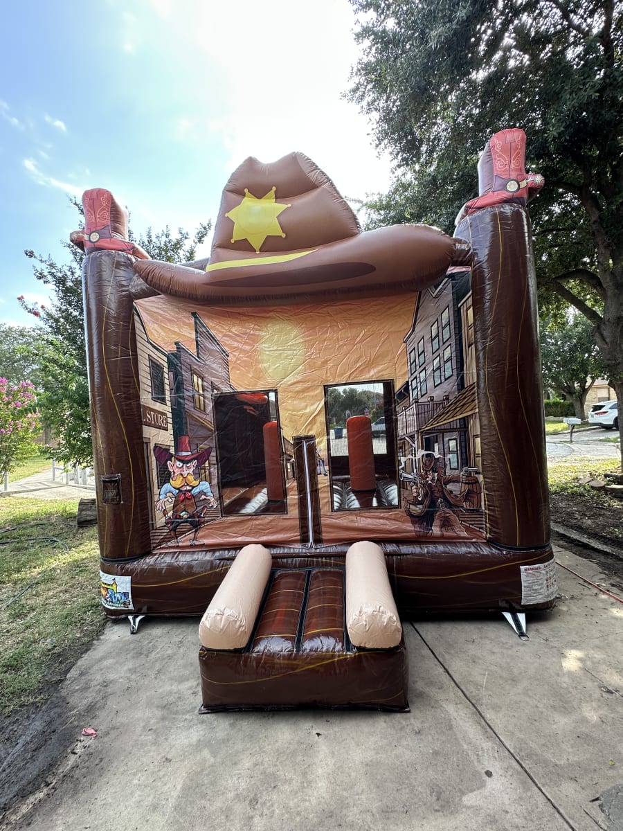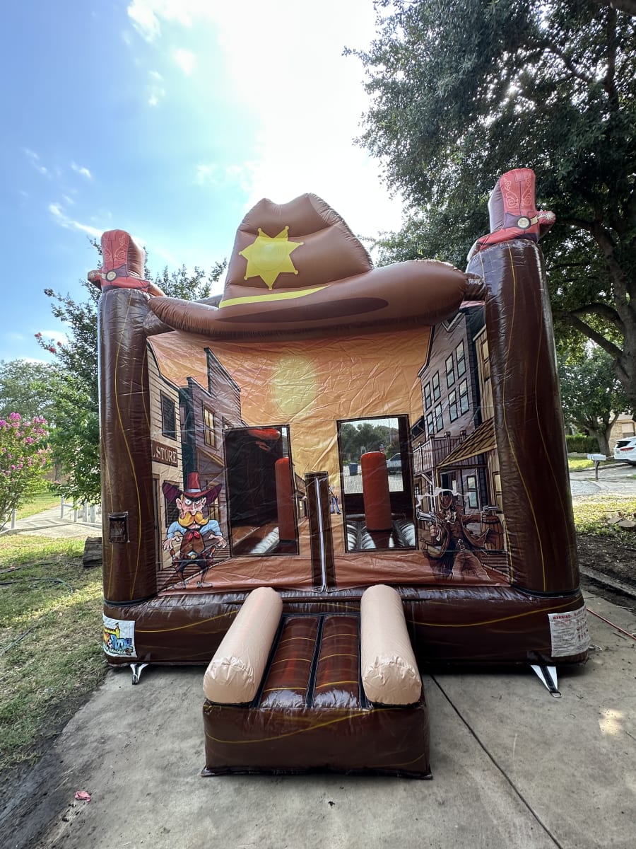 Looking for the ultimate party attraction that will thrill kids and adults alike? Bring the wild west to your next event with the Western Castle – a 13x13 bounce house castle designed with a unique cowboy theme! Perfect for birthdays, school functions, and community gatherings, our cowboy theme bounce house Western Castle in San Antonio and surrounding areas is guaranteed to make your party unforgettable.