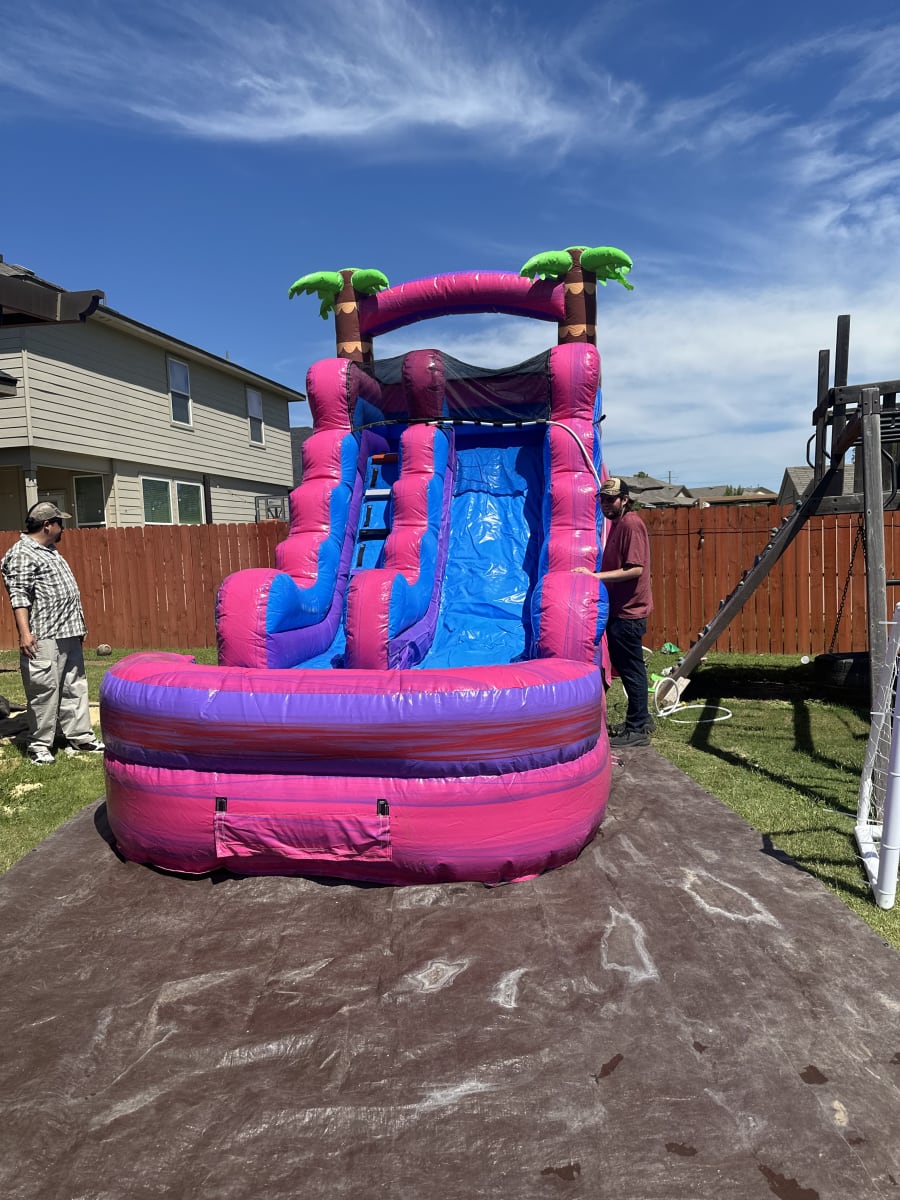 Transform your backyard into a fun-filled oasis with our 14 ft Pink Waterslide. Don't miss out on the opportunity to give your kids the ultimate summer experience. Contact us now to book the waterslide and make your next event truly spectacular. A day full of laughter, splashes, and smiles awaits!